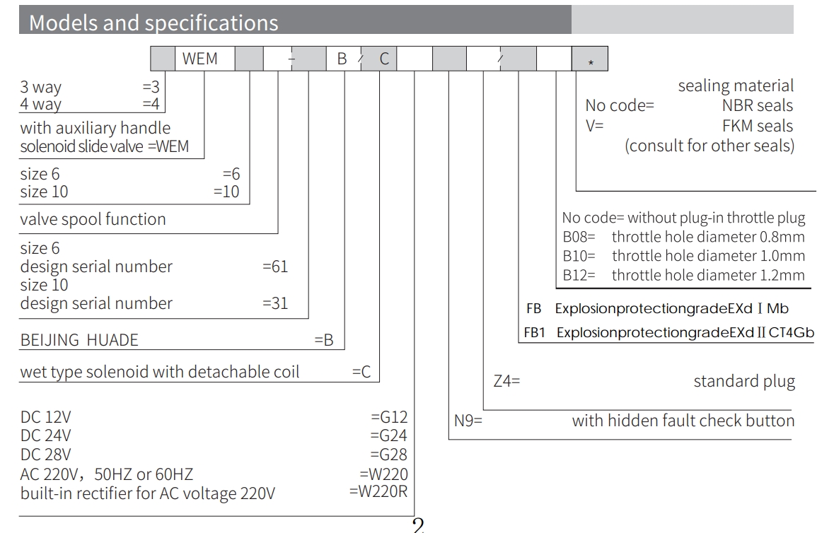 La válvula direccional de tipo WEMM es una válvula de carrete direccional operada por solenoide y mango de funcionamiento. Controla la abertura, el cierre y la dirección de flujo del flujo líquido.