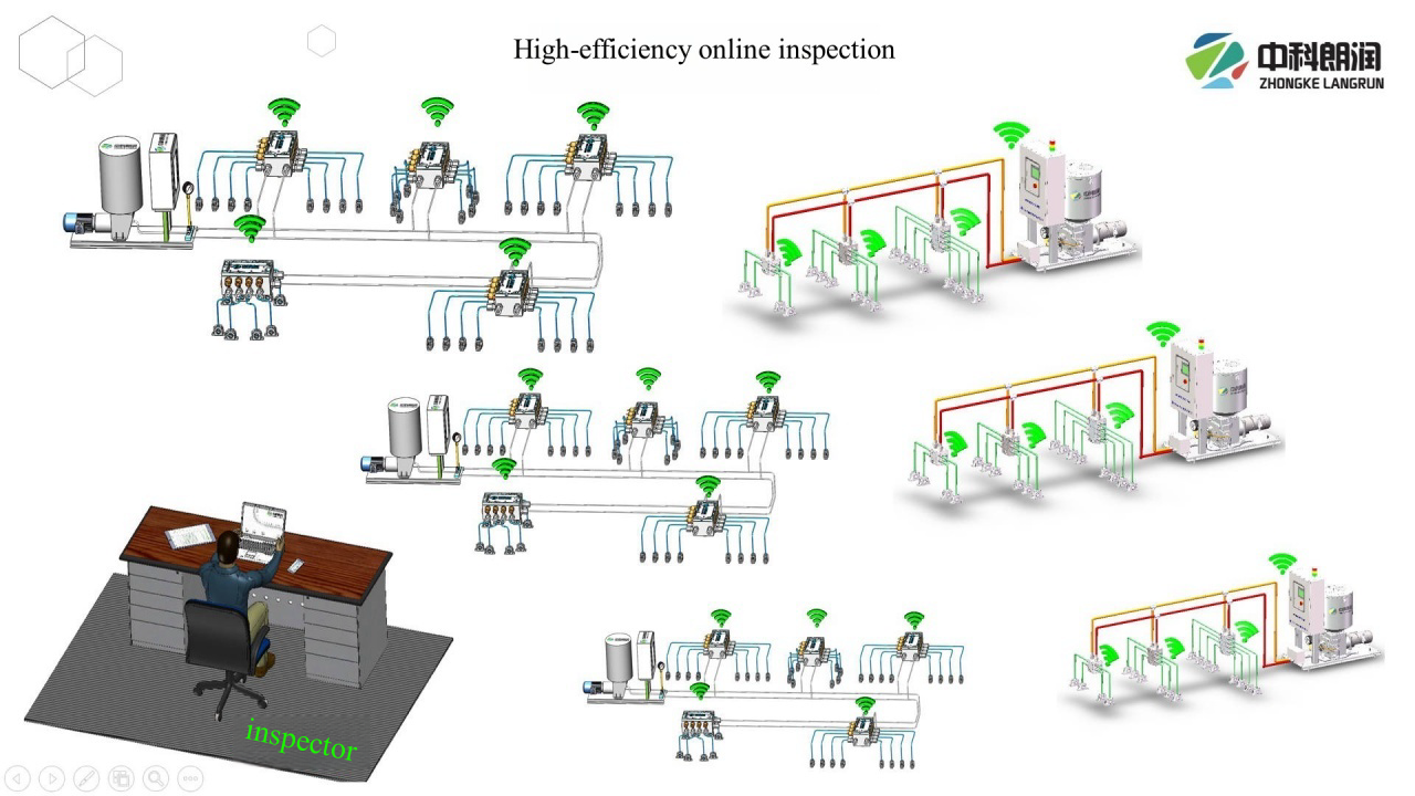 El inspector puede simplemente ver el estado de la inyección de grasa y la información de la alarma en tiempo real en la pantalla del terminal inteligente, lo que permite una rápida resolución de problemas. Solo se necesita 1 inspector para todo el sistema de lubricación, lo que reduce eficazmente los costos.